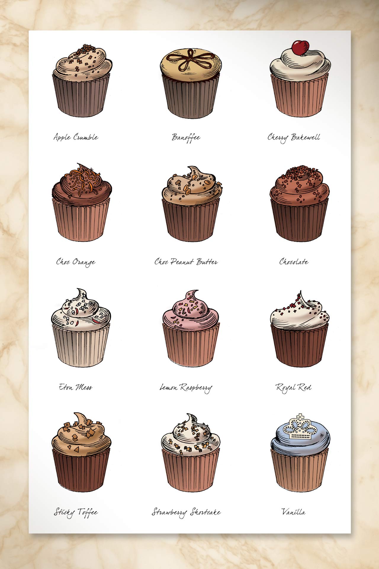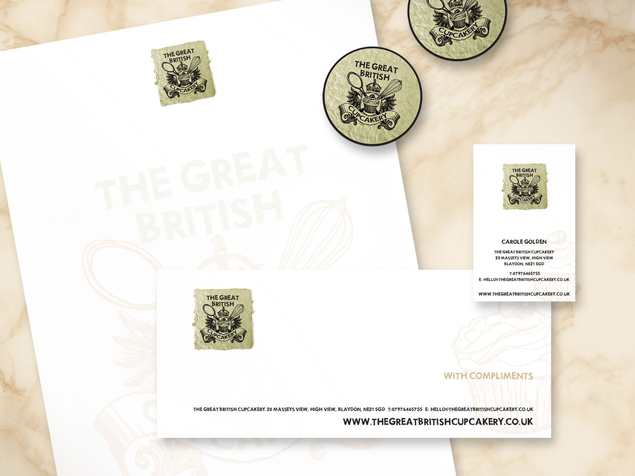 The Great British Cupcakery, a company specialising in bespoke celebration cakes, took the cupcake world by storm — a storm in a cupcake you might say! We provided a corporate identity including a range of stationery items, labelling, and a cupcakes selection ‘index card’.