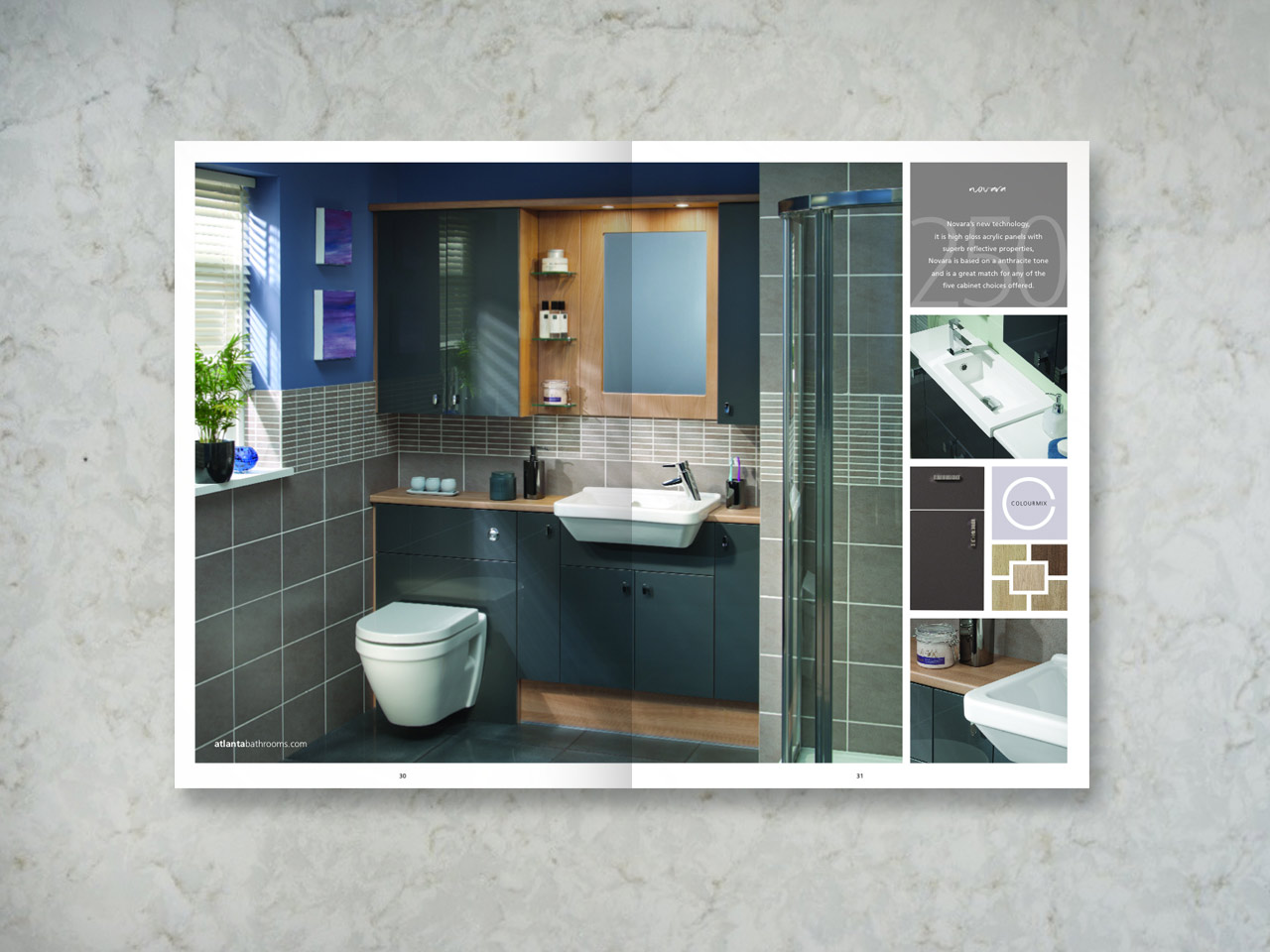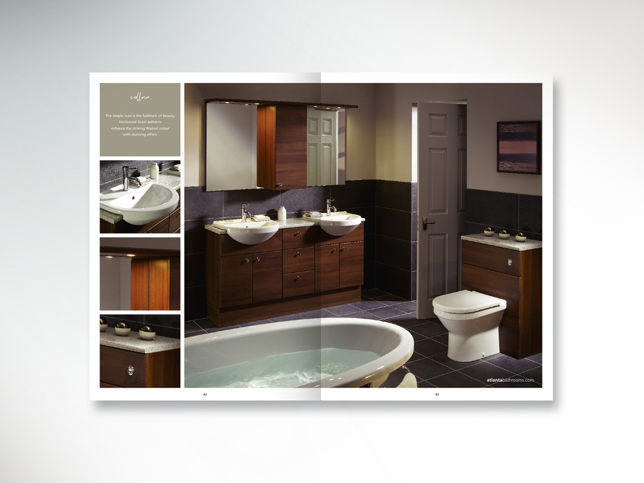 Philips Creative designed and produced a comprehensive sales brochure for Atlanta Bathrooms, manufacturers of exclusive collections of luxury bathroom furniture and storage.