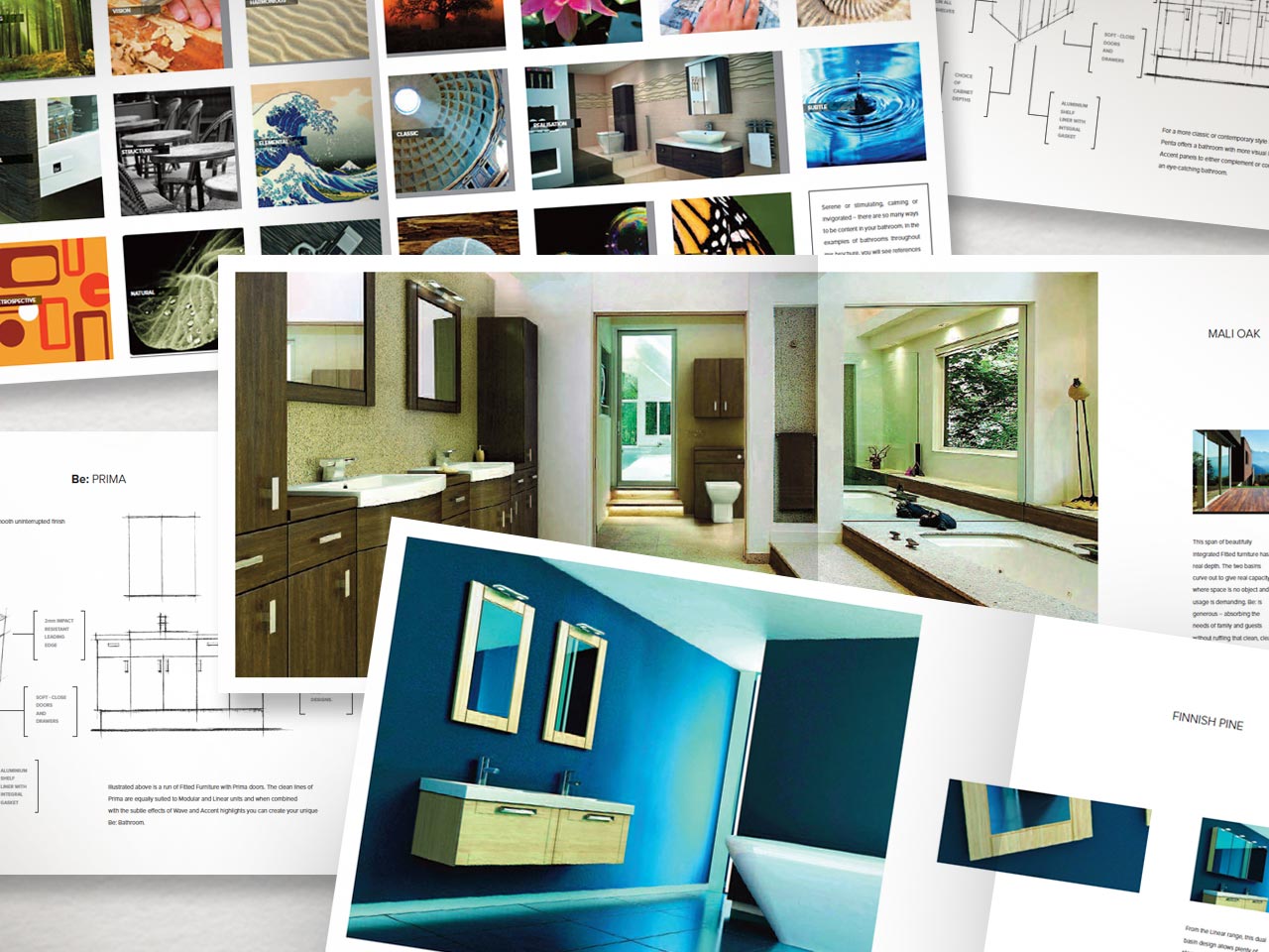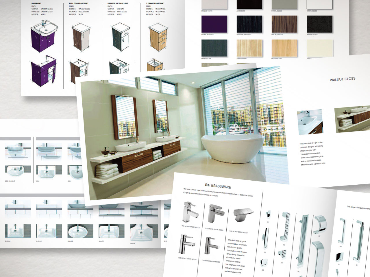 A comprehensive catalogue incorporating dimensions and finishes, various sales leaflets and a special promotional soap box with bar of debossed Be: soap, were created and produced for the Be Modern Group, makers of luxury bathroom furniture and accessories.