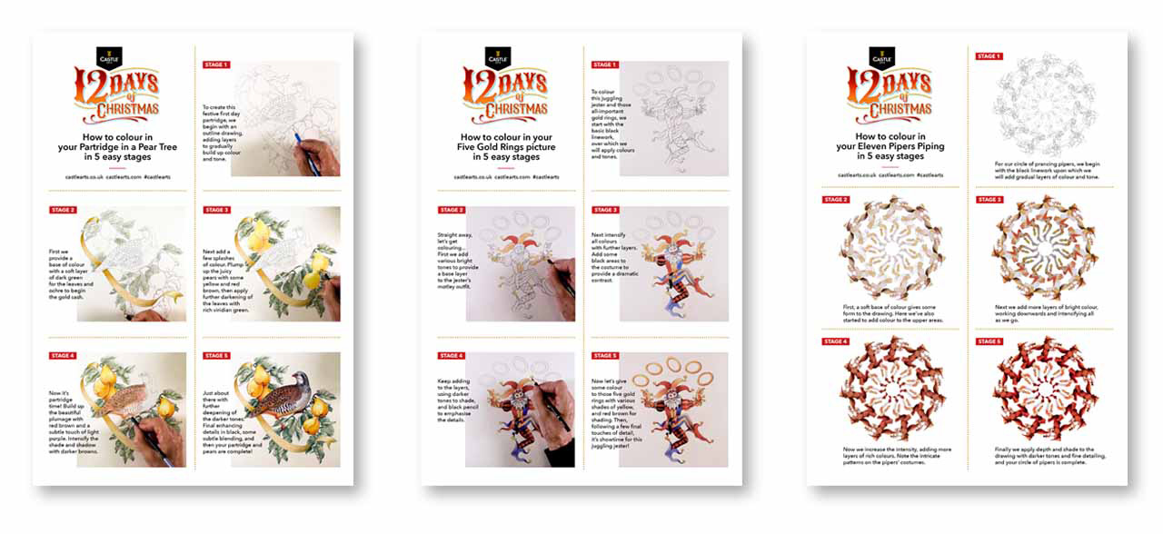 With a traditional, vintage look reminiscent of classic holiday illustrations, this festive campaign brought the '12 Days of Christmas' theme to life in coloring sheet form.
