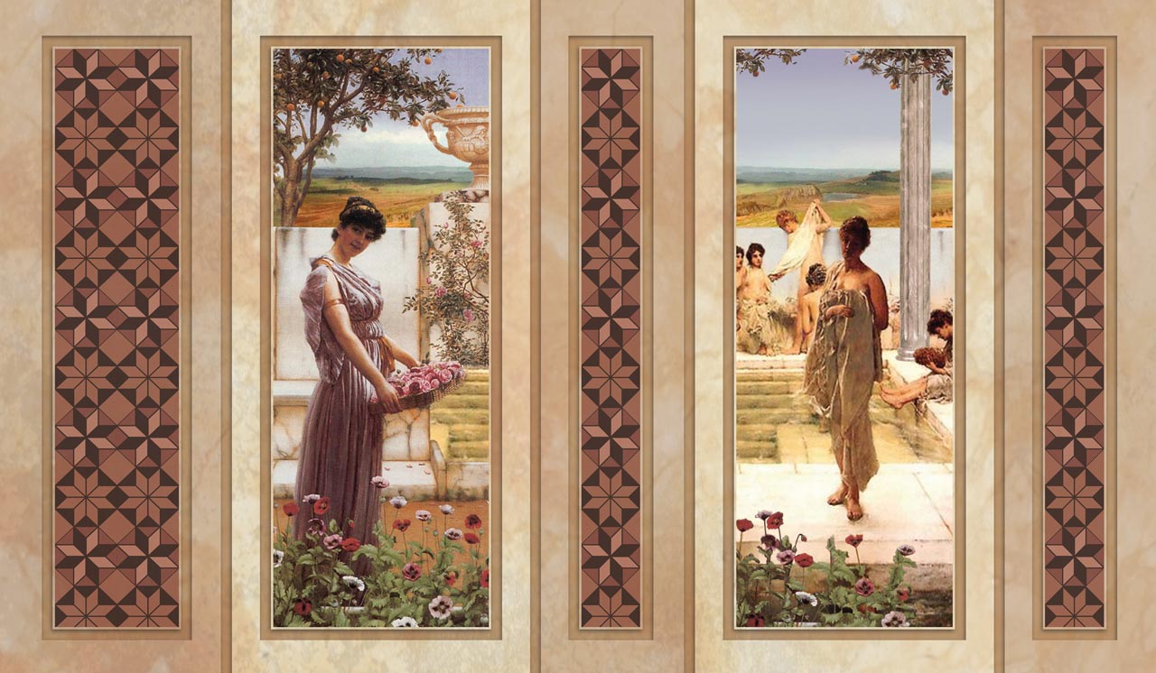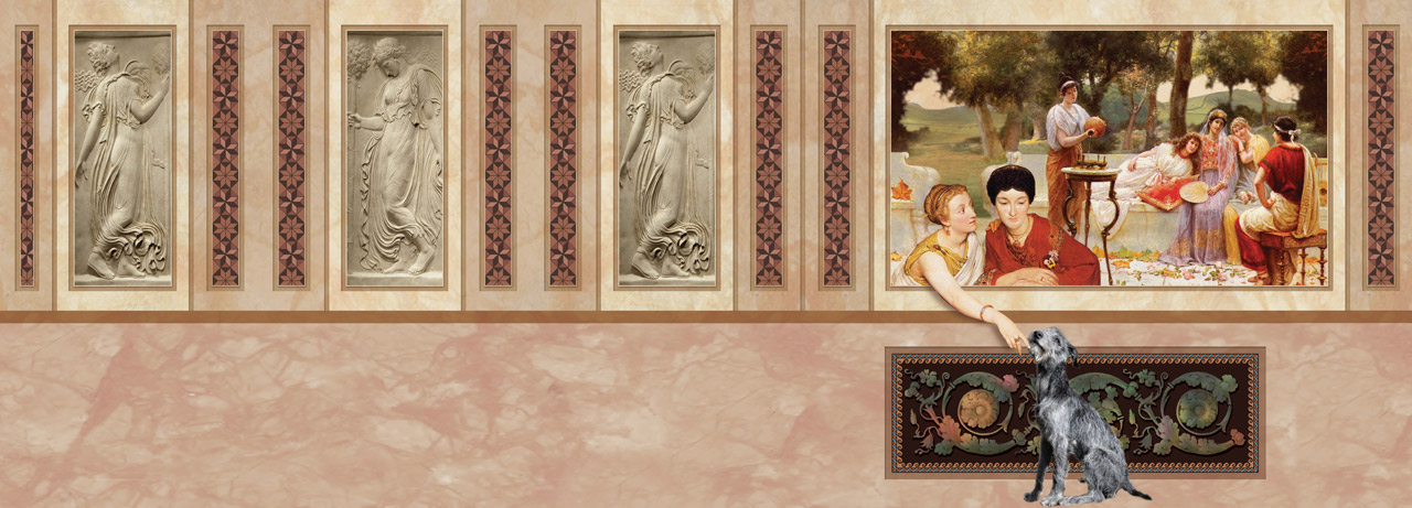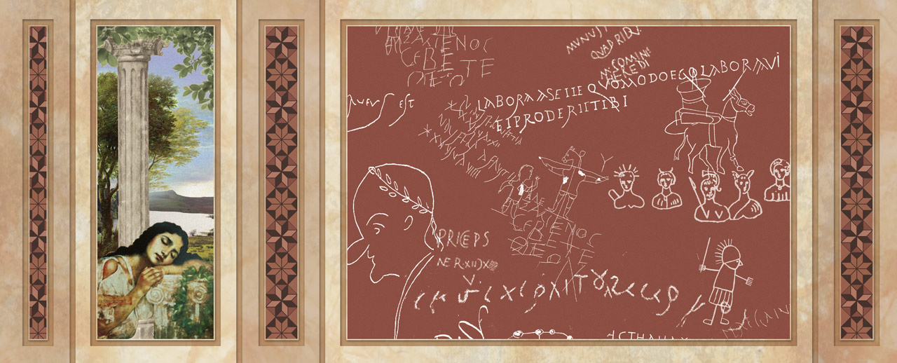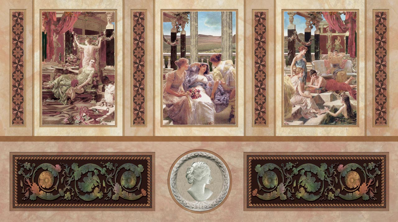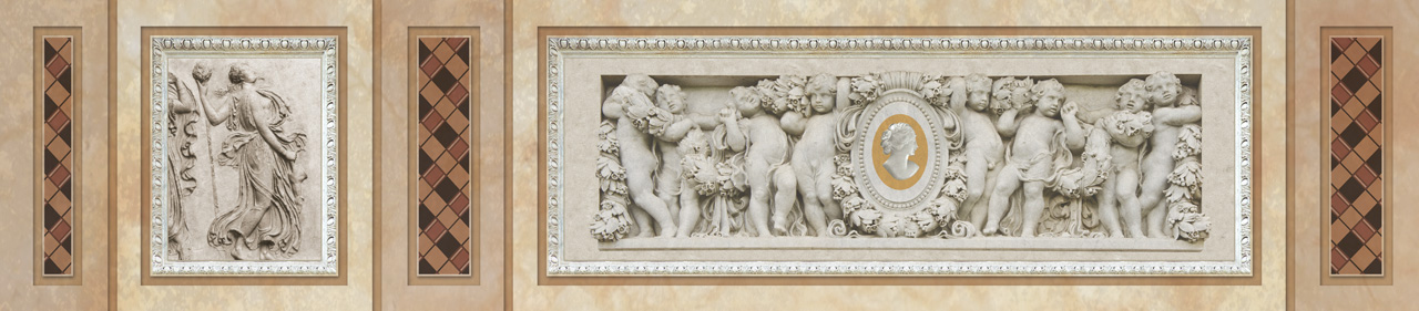 Conveniences with a difference… all three of the museum restrooms were extensively refurbished with trompe-l’œil murals, tiling effects and friezes with scenes depicting Roman life and the surrounding countryside. It was no mean feat to design and install such a plethora of graphic elements around the existing restroom furnishings.