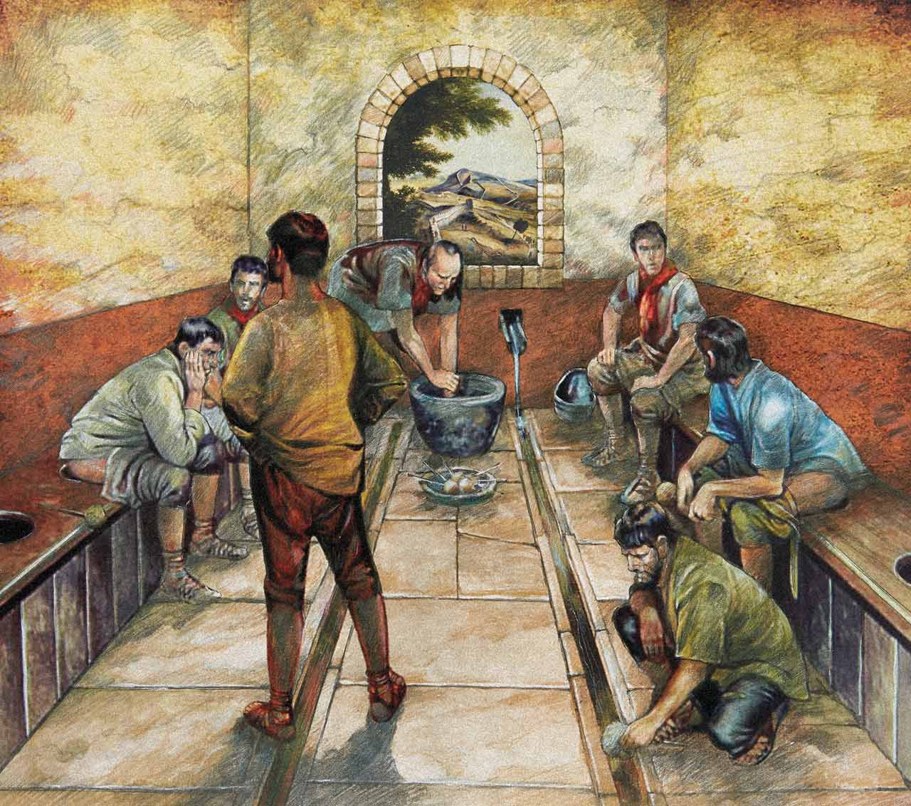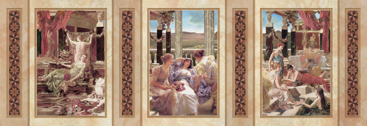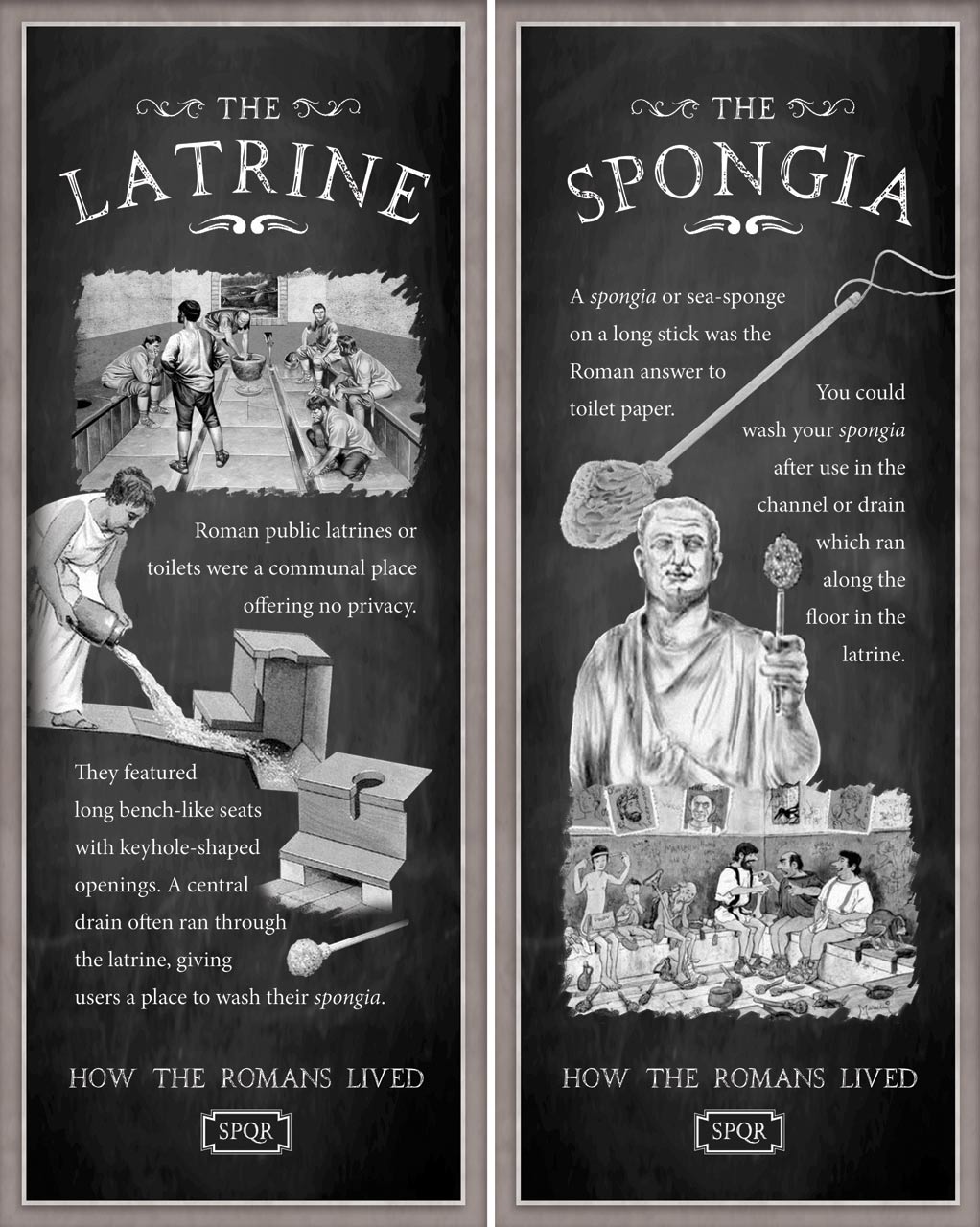 Conveniences with a difference… all three of the museum restrooms were extensively refurbished with trompe-l’œil murals, tiling effects and friezes with scenes depicting Roman life and the surrounding countryside. It was no mean feat to design and install such a plethora of graphic elements around the existing restroom furnishings.