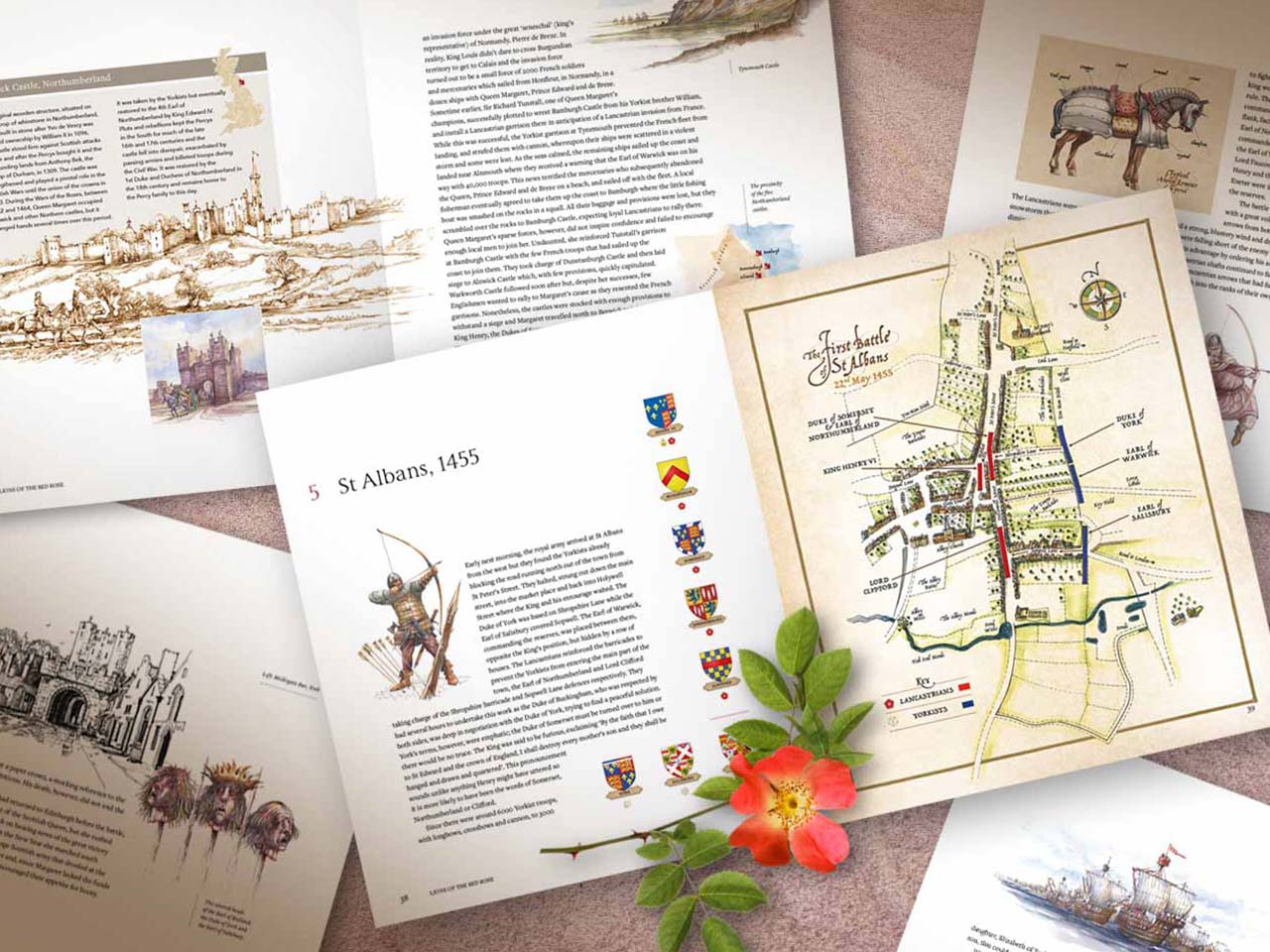 An initial request for Phillips Creative to illustrate several maps showing sites of battle blossomed into a commission to provide the book design, artwork and production, as well as the cover painting, several family trees, and almost eighty illustrations.