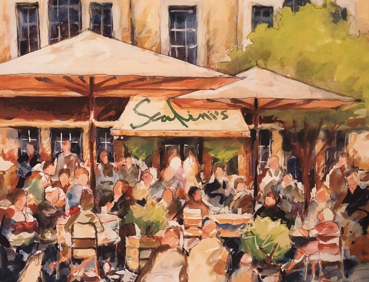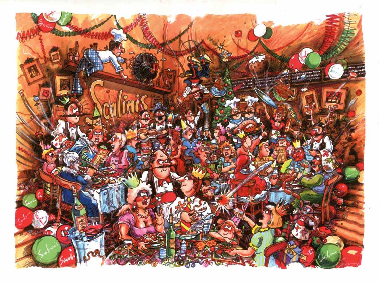 A rustic-themed restaurant serving up Italian and Mediterranean cuisine, Scalini’s was located along the wine bar strip of Osborne Road, Newcastle upon Tyne. Our involvement included the design of a whole range of menus and promotional literature, the main focus of which were several specially-created illustrations in an Italian/Mediterranean style. A celebratory cartoon depicting the members of staff, management and friends was also commissioned.