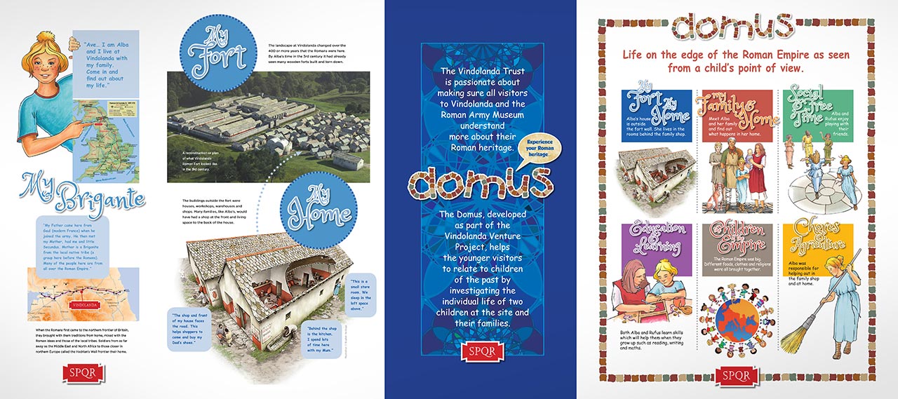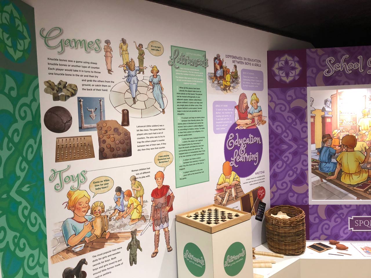 The many topics and aspects of Roman life featured include: Family life, Social and playtime, Education, Eating and drinking, Home life, and Cooking.