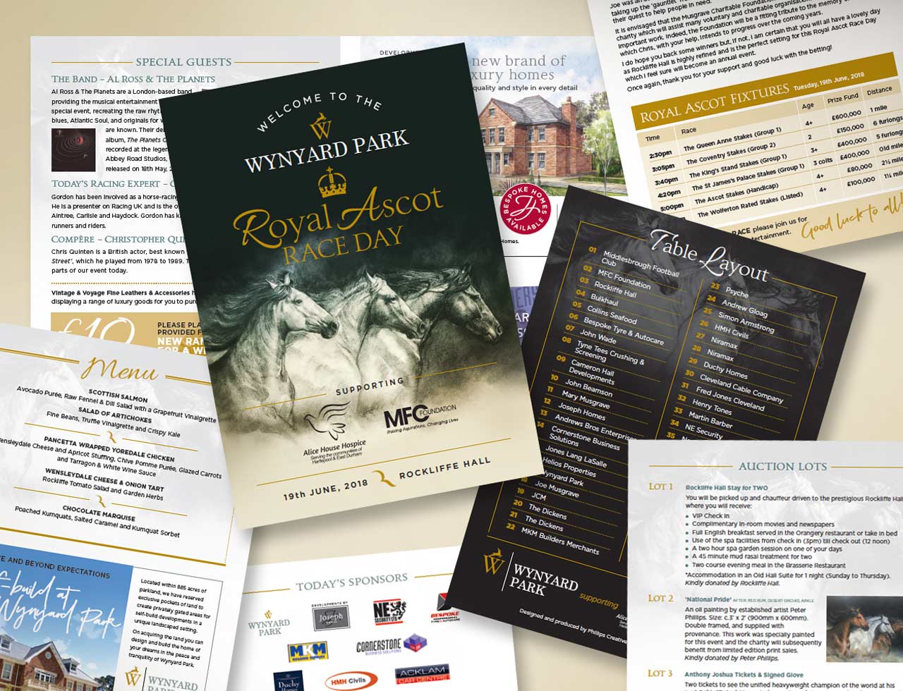 When Wynyard Park celebrated Royal Ascot Day with a charity function at Rockliffe Hall on 19 June, 2018, Phillips Creative were invited to provide the event programme and all publicity materials.